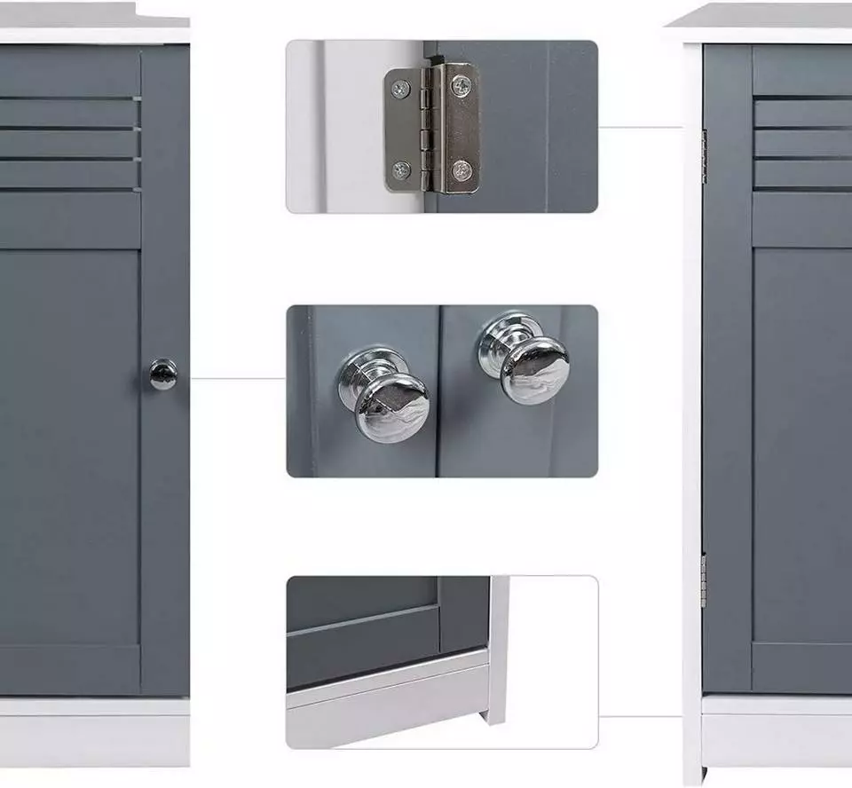 - Maße: 60 x 60 x 30 cm mit zwei Flügeltüren in klassischem Grau und mit Ablage, einfach den Handtüchern, Putzmittel oder Toilettenpapier zum Erhalten