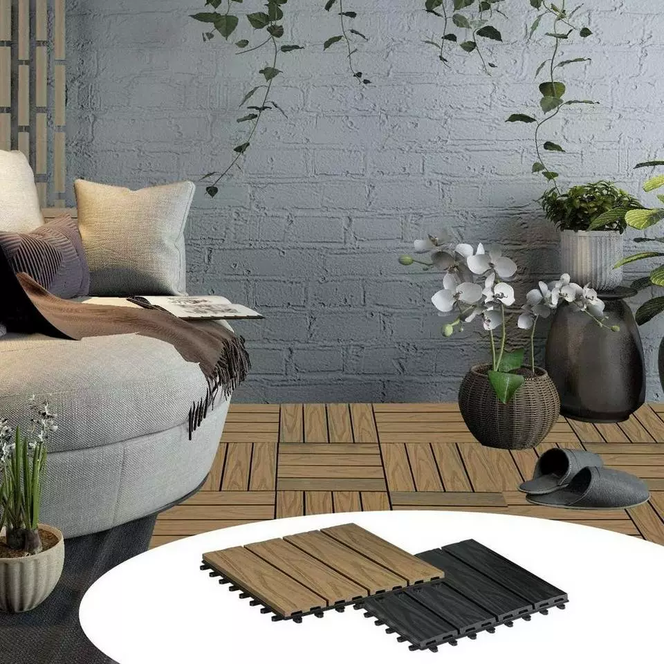 • 11er-Set WPC Balkonfliesen 3D Holzstruktur