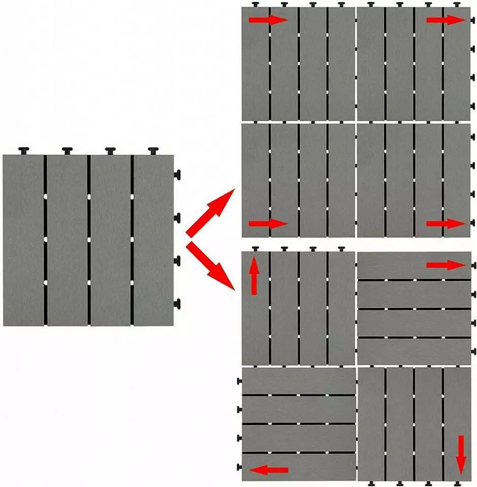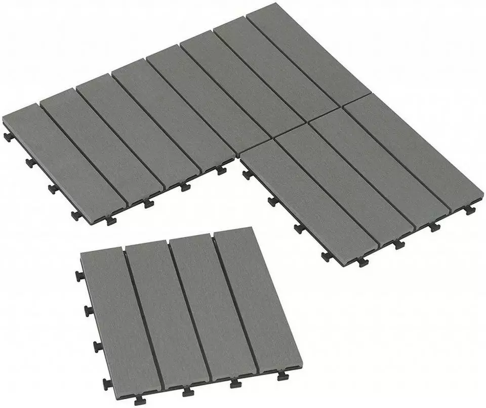 - 22 Stück WPC Terrassenfliesen in T-Form 30x30cm