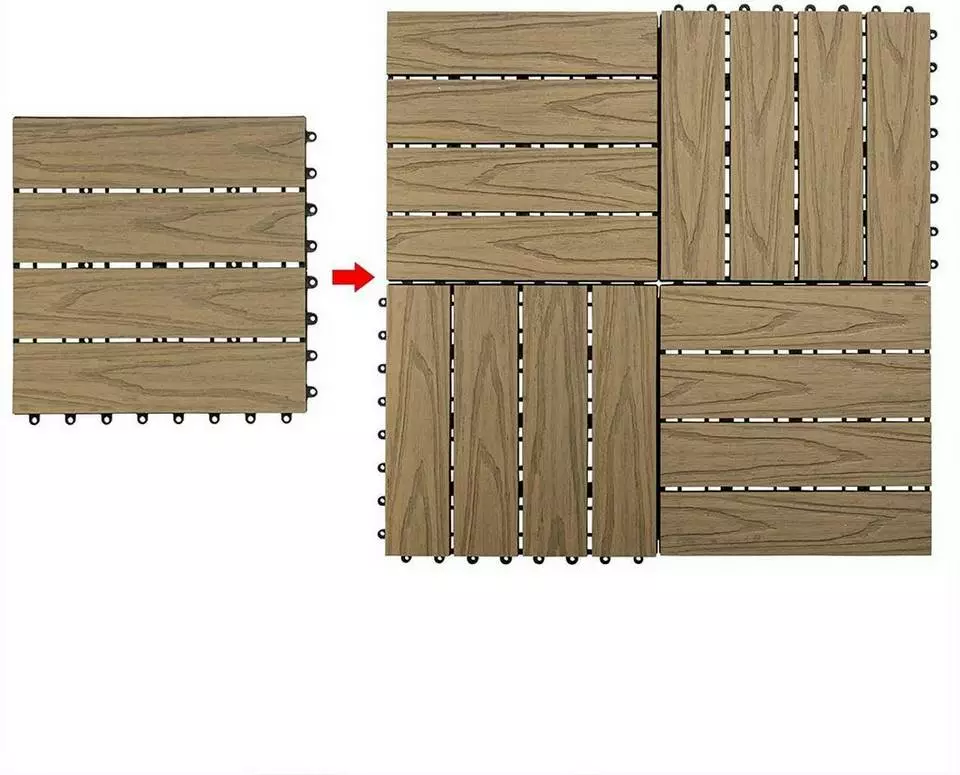 - Die Kunststoff-Fliesen in Holzoptik, perfekt für Terrassen, Balkone, Badezimmer