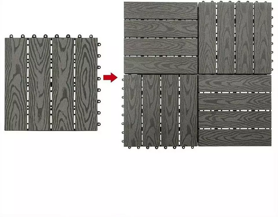 - Lieferumfang: 11x WPC-Fliesen je 30 cm x 30 cm = 1m²