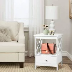 EUGAD Nachttisch, Beistelltisch Nachtschrank Nachtkommode Sofatisch aus MDF mit Schublade und Ablage für Schlafzimmer oder Wohnzimmer Weiß