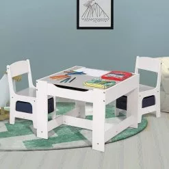 EUGAD Kindersitzgruppe, (3-tlg), 1 Kindertisch und 2 Stühle mit Stauraum, Maltisch für Kinder Kindermöbel Set, Tischplatte abnehmbar Weiß
