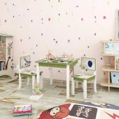 EUGAD Kindersitzgruppe, (3-tlg), Kinder Tischset mit Kantenschutz im Kinderzimmer Kindermöbel aus MDF und Kiefernholz Zoomotive(1 Tisch und 2 Stühle, 3-tlg)