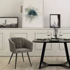 EUGAD 4-Fußstuhl, 6er-Set Esszimmerstuhl Polsterstuhl aus Stoffbezug Grau Dunkelbraun